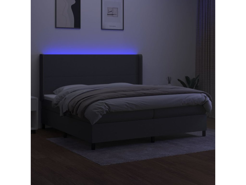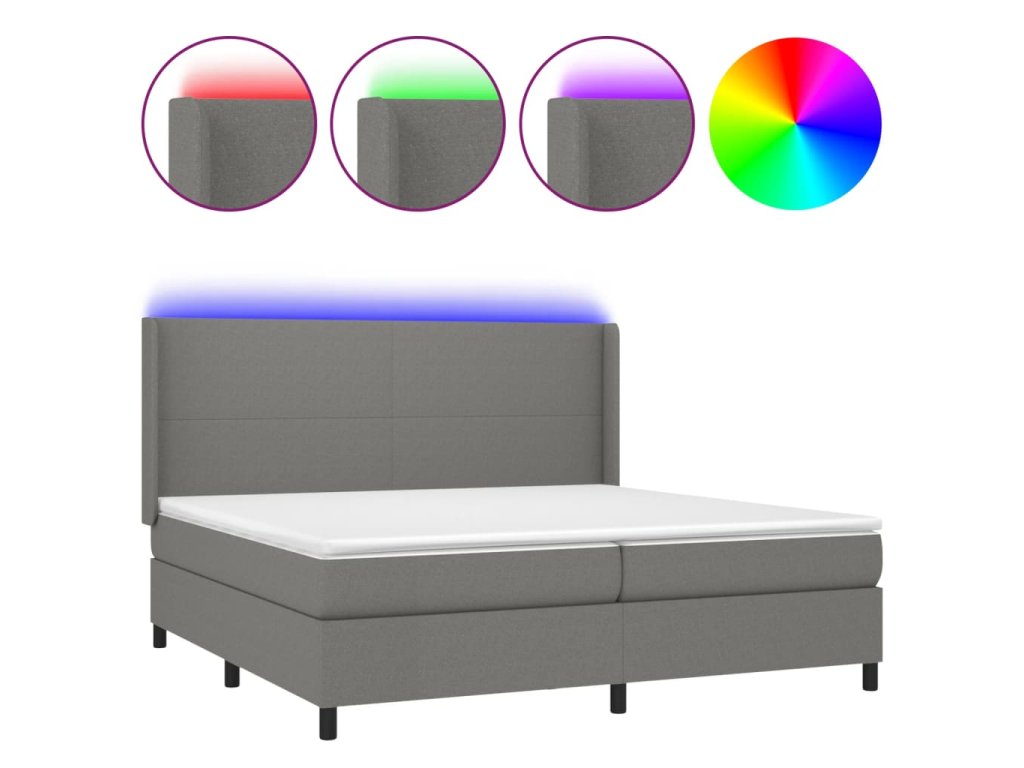 vidaXL Posteľ boxsping s matracom a LED tmavosivá 200x200 cm látka