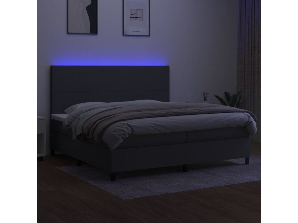 vidaXL Posteľ boxsping s matracom a LED tmavosivá 200x200 cm látka