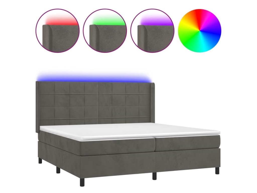 vidaXL Posteľ boxsping s matracom a LED tmavosivá 200x200 cm zamat