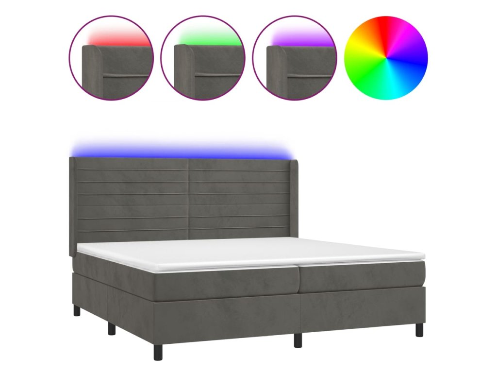 vidaXL Posteľ boxsping s matracom a LED tmavosivá 200x200 cm zamat
