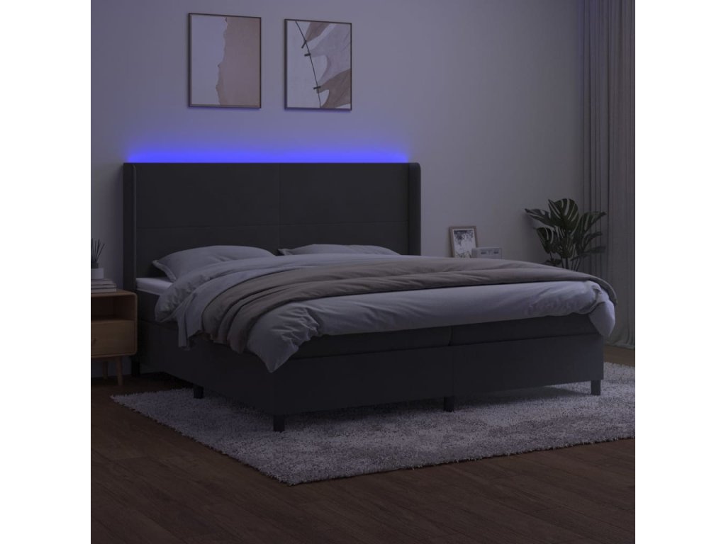 vidaXL Posteľ boxsping s matracom a LED tmavosivá 200x200 cm zamat
