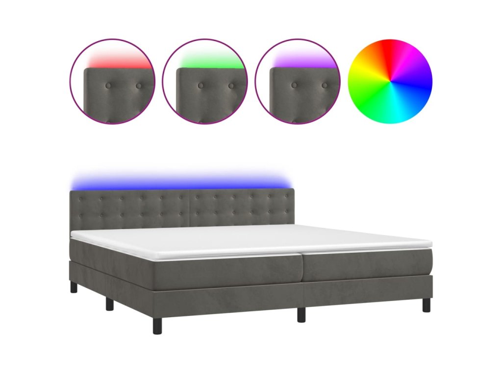 vidaXL Posteľ boxsping s matracom a LED tmavosivá 200x200 cm zamat