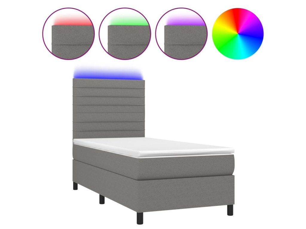 vidaXL Posteľ boxsping s matracom a LED tmavosivá 90x200 cm látka