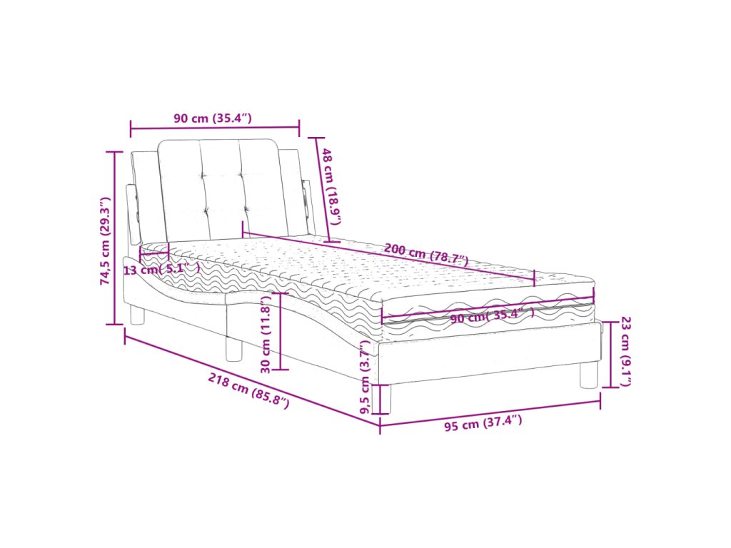 - Celkové rozmery: 218 x 95 x 74,5 cm (D x Š x V)