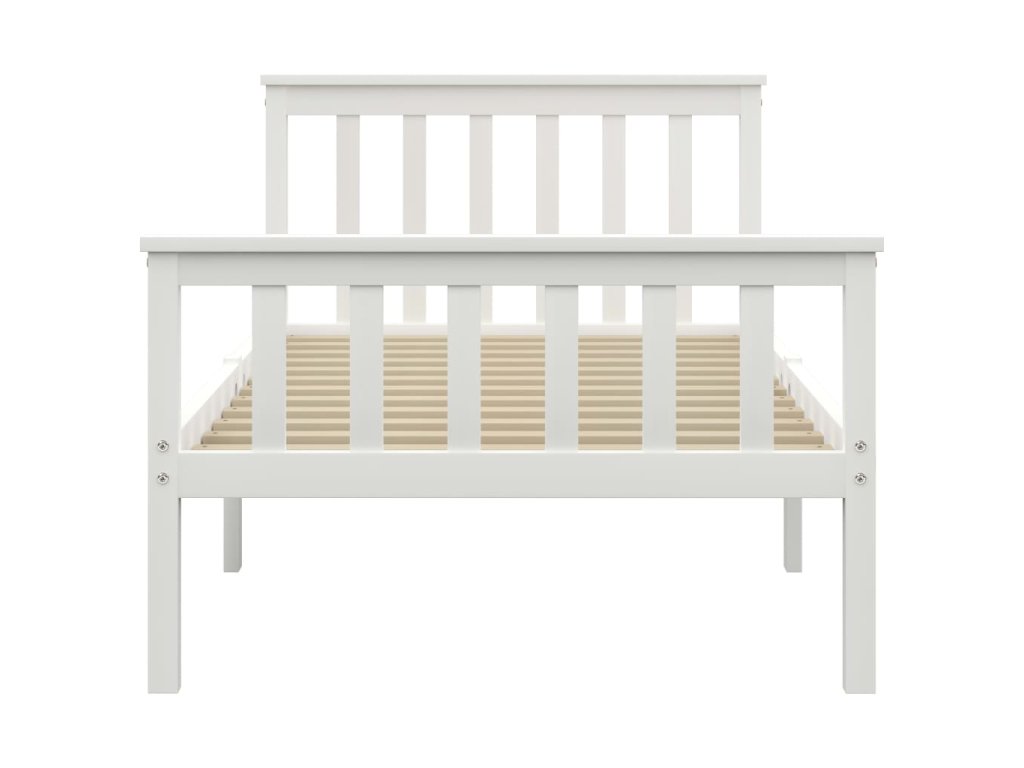 Posteľný rám má pevnú a robustnú konštrukciu, pretože je vyrobený z borovicového masívu. Zaujímavý tvar predného a zadného čela posteli dodáva moderný vzhľad. Pevné rošty z preglejky poskytujú potrebnú oporu a pohodlie. Vhodné rozmery matraca na túto posteľ sú 100 x 200 cm.