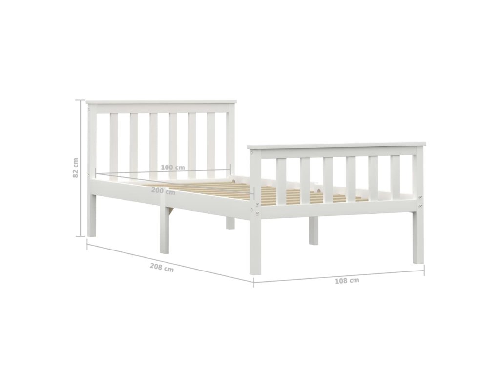 vidaXL Posteľný rám, biely, borovicový masív 100x200 cm