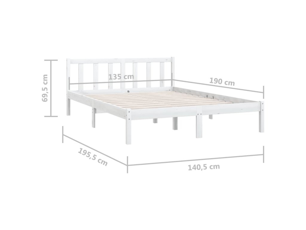 vidaXL Posteľný rám, biely, borovicový masív 135x190cm, 4FT6 dvojlôžko