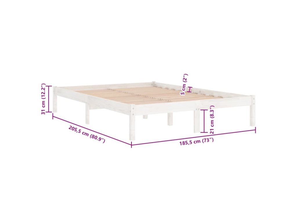 vidaXL Posteľný rám, biely, drevený masív 180x200 cm, Super King