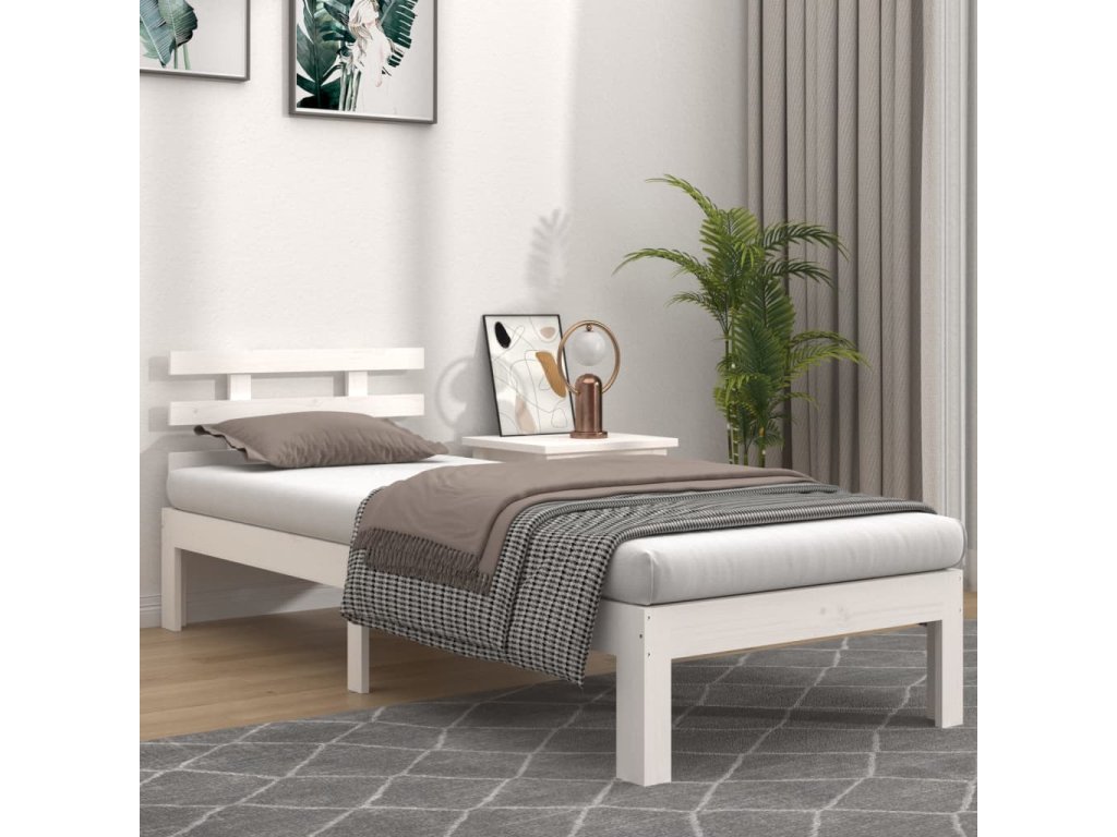 vidaXL Posteľný rám, biely, drevený masív 90x190 cm, jednolôžko