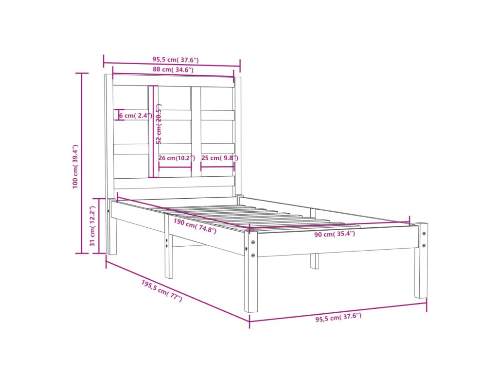 - Rozmery rámu postele: 195,5 x 95,5 x 31 cm (D x Š x V)