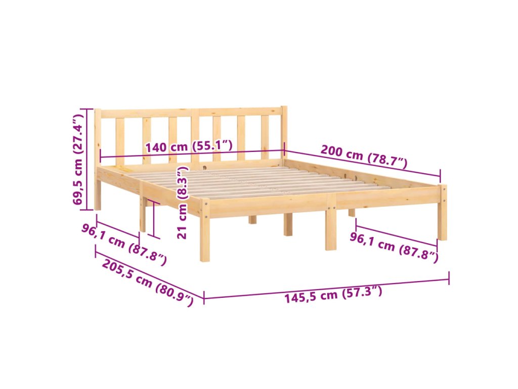 Základňa postele je vyrobená z masívneho borovicového dreva a je mimoriadne pevná a odolná. Tento základ postele je vhodný pre matrac s rozmermi 140 × 200 cm. Na tejto posteli si budete môcť vychutnať skvelý spánok každú noc!