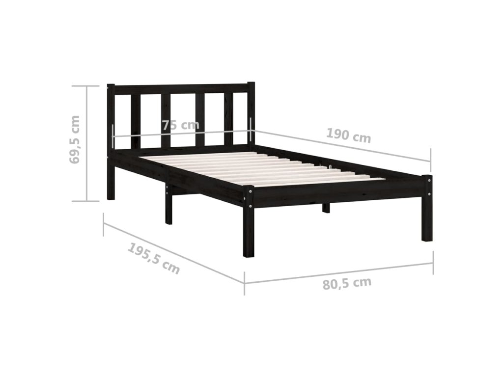 vidaXL Posteľný rám, čierny, borovica 75x190 cm, 2FT6 malé jednolôžko