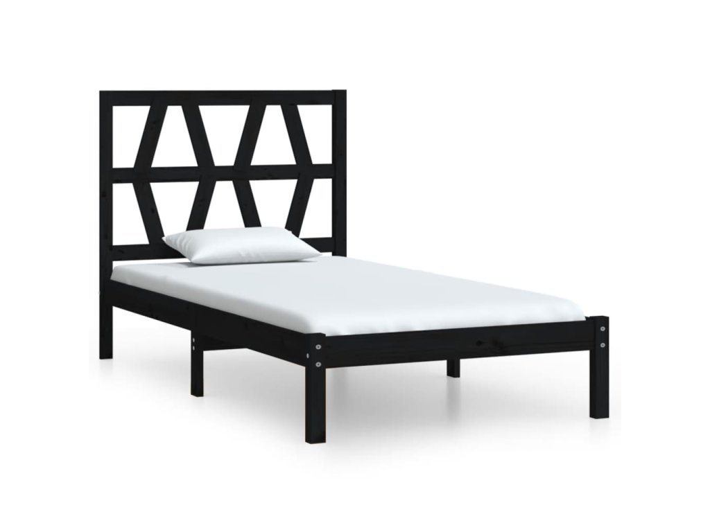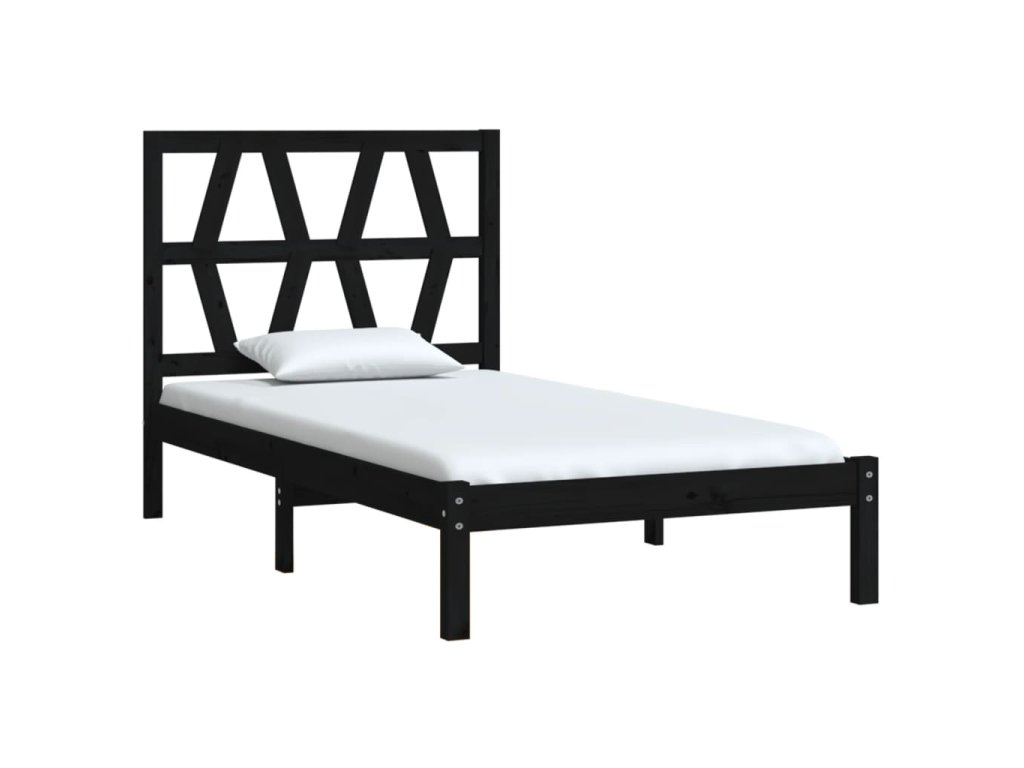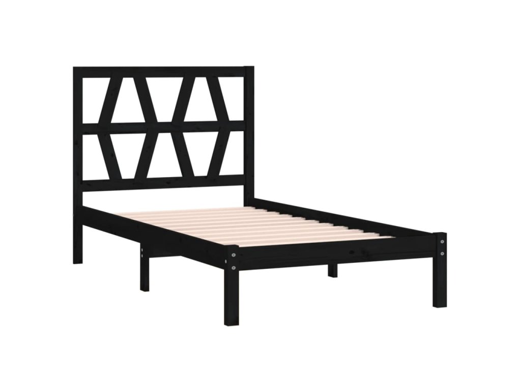 vidaXL Posteľný rám, čierny, borovica 75x190 cm, malé jednolôžko