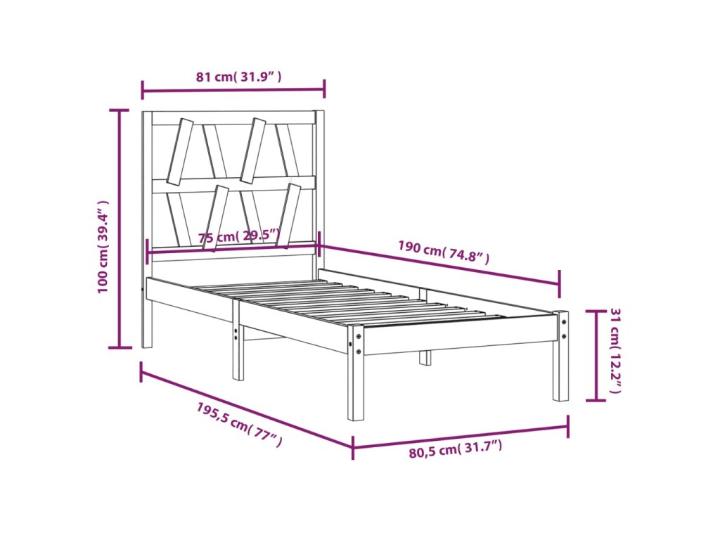 - Tento rám postele je vhodný pre matrac s rozmermi 75 x 190 cm (2FT6 malé jednolôžko).