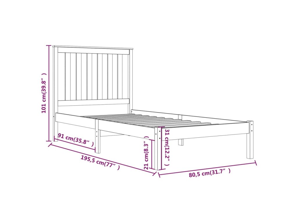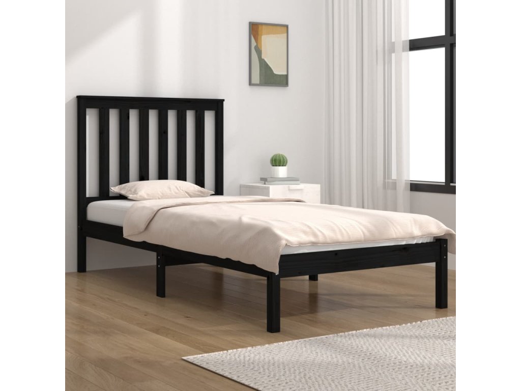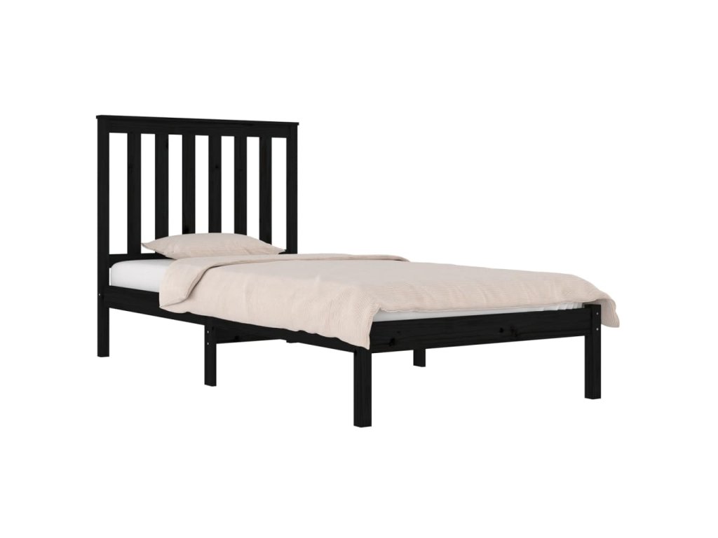 vidaXL Posteľný rám, čierny, borovica 75x190 cm, malé jednolôžko