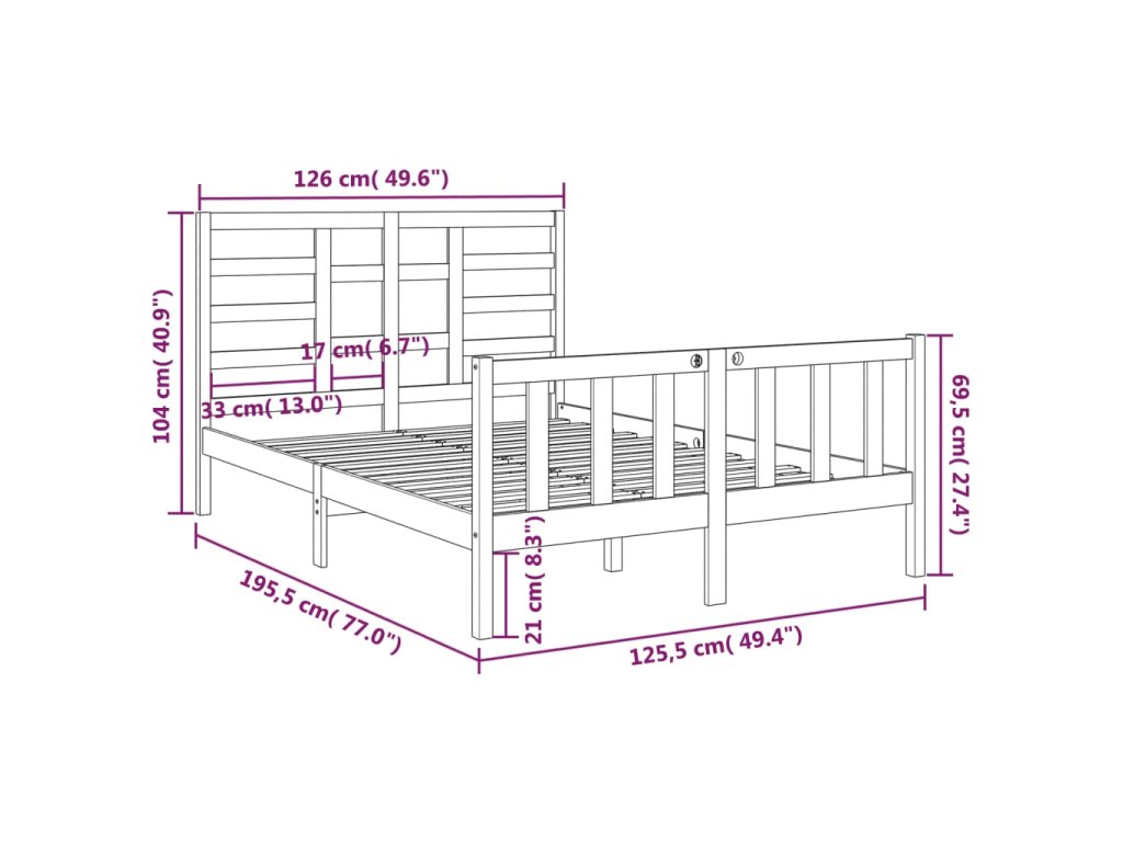 - Tento rám postele je vhodný pre matrac s rozmermi 120 x 190 cm (4FT malé dvojlôžko).
