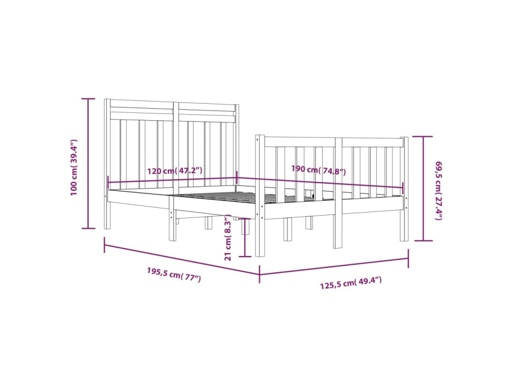 - Tento rám postele je vhodný pre matrac s rozmermi 120 x 190 cm (4FT malé dvojlôžko).