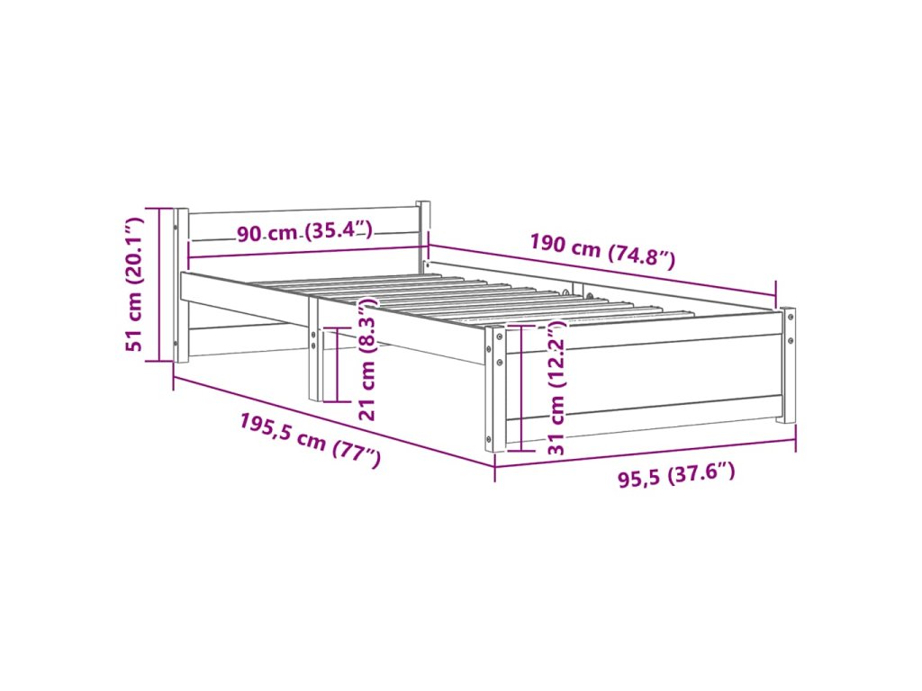 - Tento rám postele je vhodný pre matrac s rozmermi 90 x 190 cm (3FT jednolôžko).