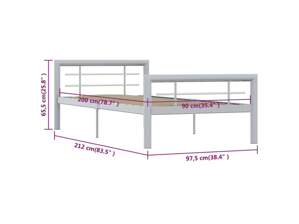 vidaXL Posteľný rám, sivo biely, kov 90x200 cm