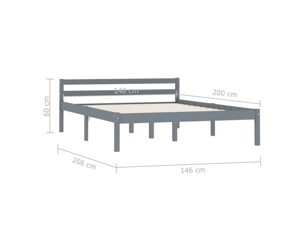 vidaXL Posteľný rám, sivý, borovicový masív 140x200 cm