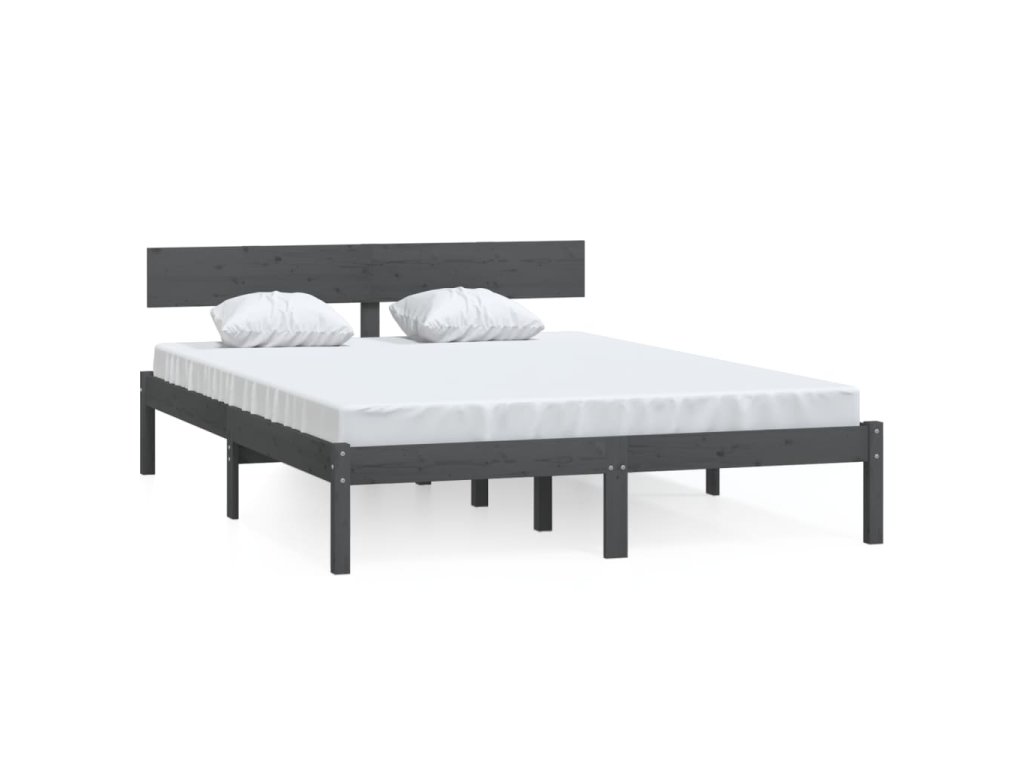 vidaXL Posteľný rám, sivý, borovicový masív 150x200 cm, King