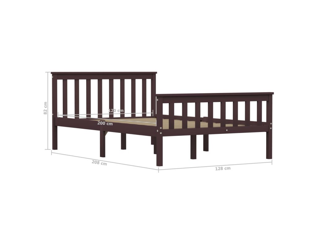 vidaXL Posteľný rám, tmavohnedý, borovicový masív 120x200 cm