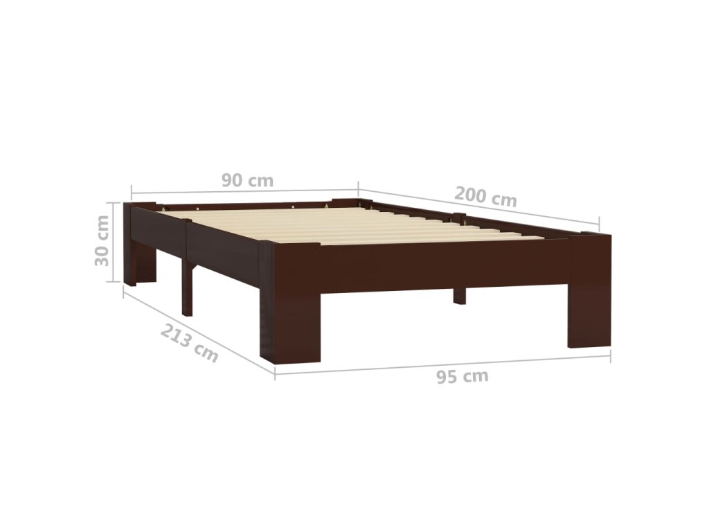 vidaXL Posteľný rám, tmavohnedý, borovicový masív 90x200 cm