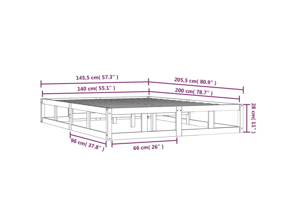 - Tento rám postele je vhodný pre matrac s rozmermi 140 x 200 cm