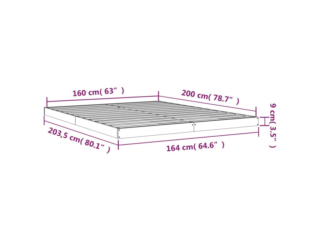 vidaXL Posteľný rám 160x200 cm borovicový masív