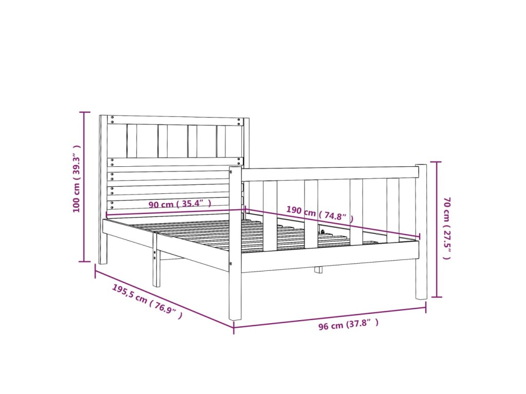 - Tento rám postele je vhodný pre matrac s rozmermi 90 x 190 cm (3FT6 malé jednolôžko).