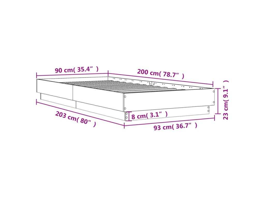 - Celkové rozmery: 203 x 93 x 23 cm (D x Š x V)