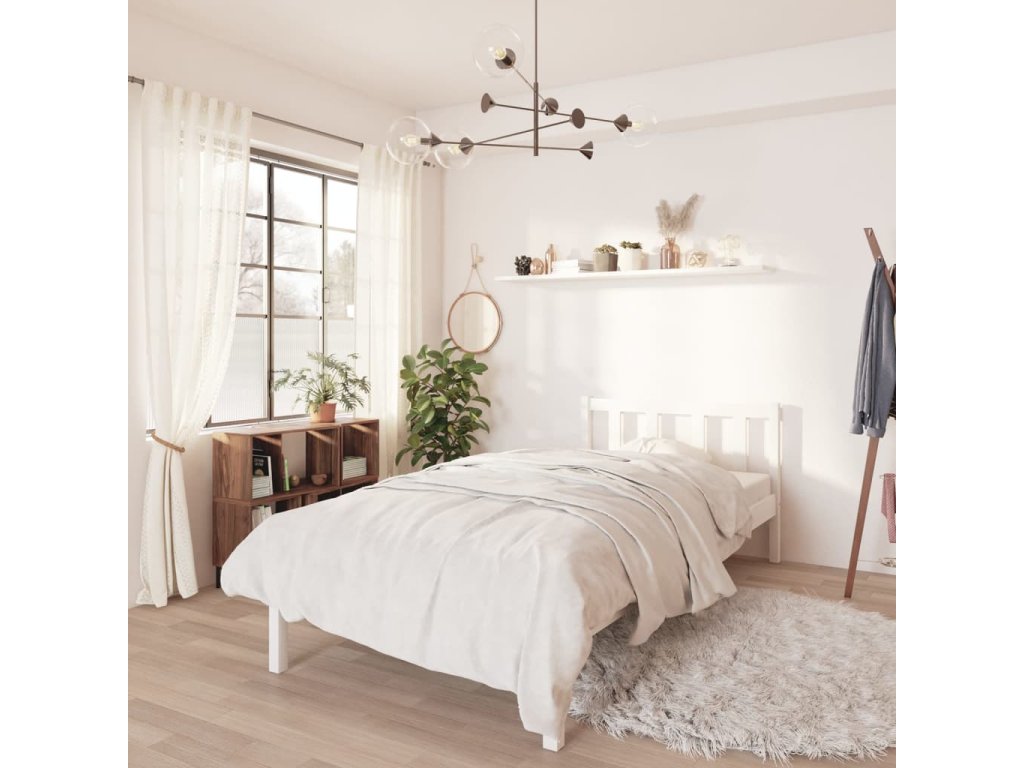 vidaXL Posteľný rám biely borovicový masív 100x200 cm