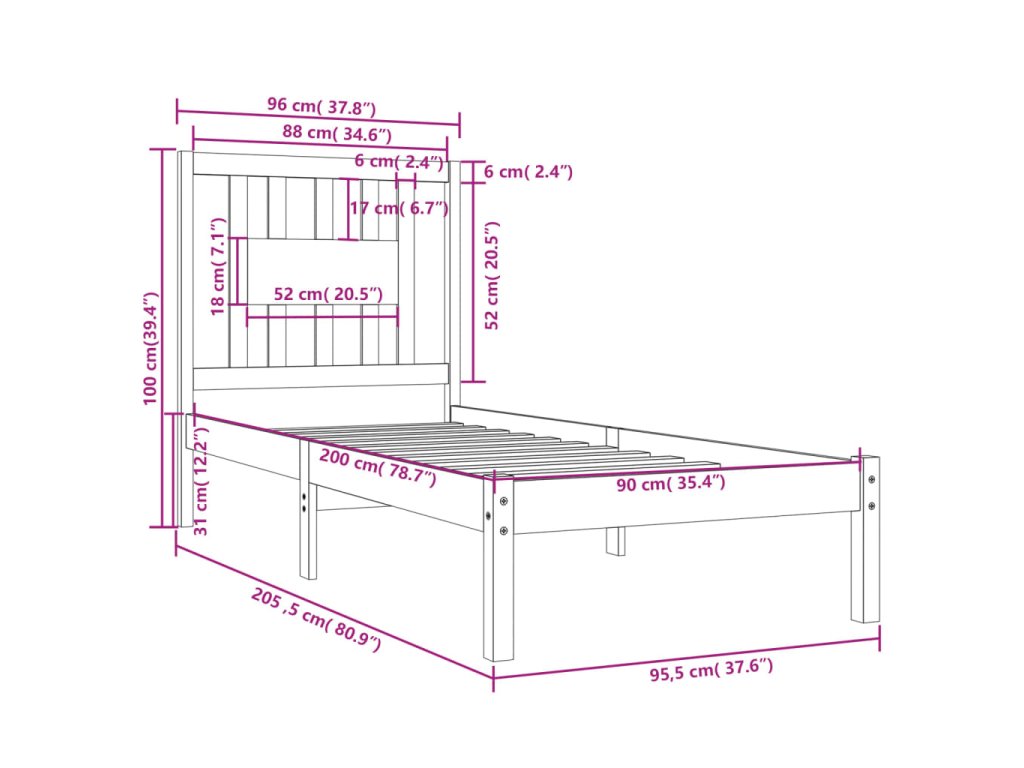 - Tento rám postele je vhodný pre matrac s rozmermi 90 x 200 cm.