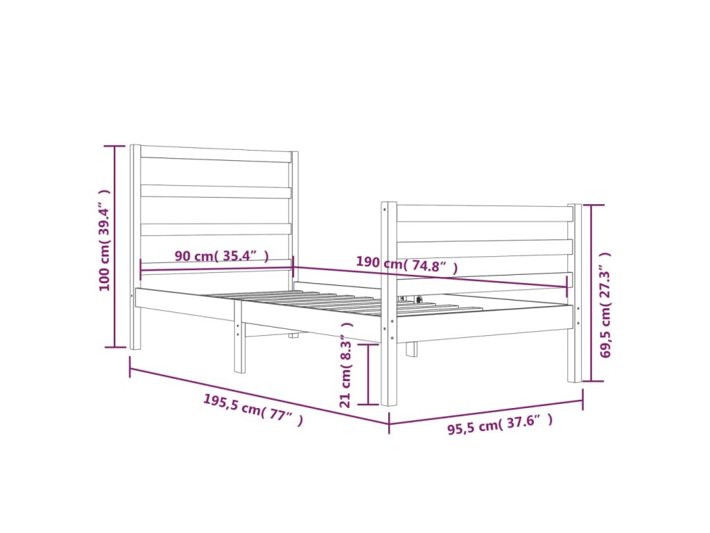 - Tento rám postele je vhodný pre matrac s rozmermi 90 x 190 cm (3FT jednolôžko).