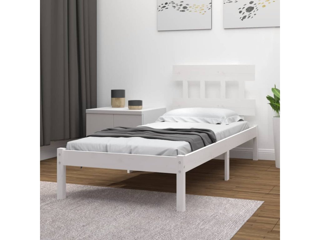 vidaXL Posteľný rám biely masívne drevo 100x200 cm