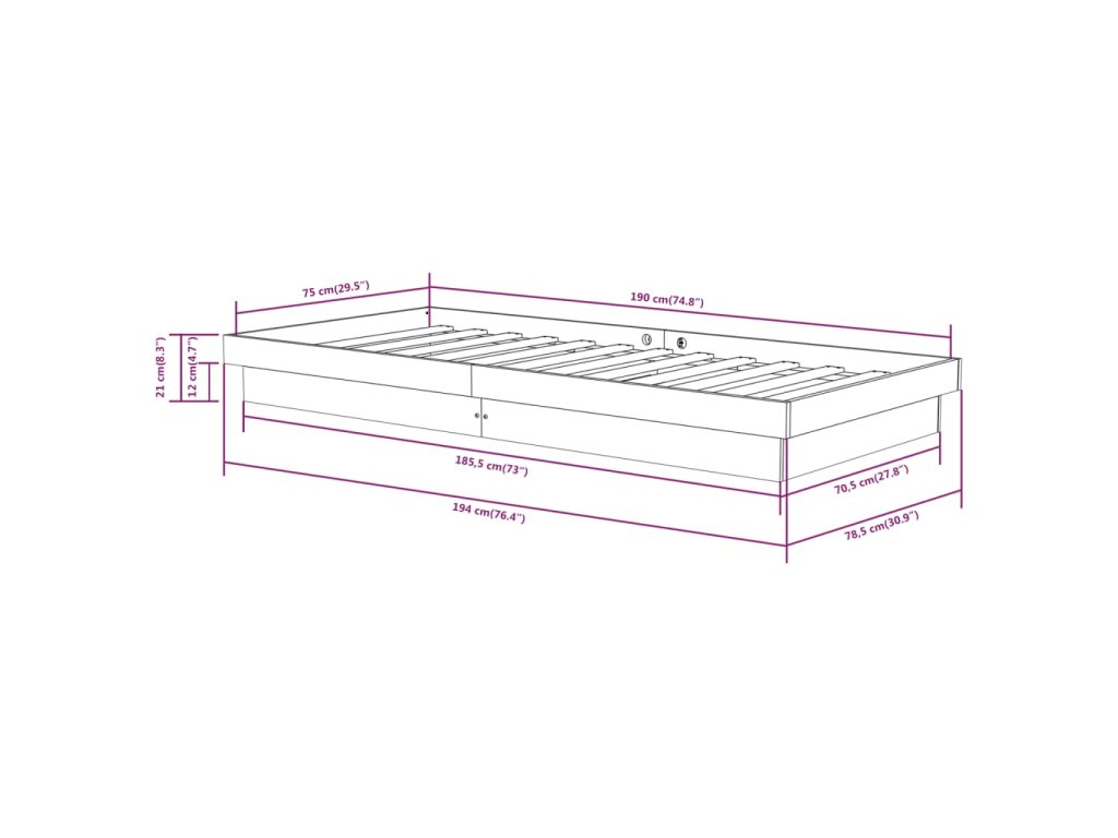 - Tento rám postele je vhodný pre matrac s rozmermi 75 x 190 cm (2FT6 malé jednolôžko).