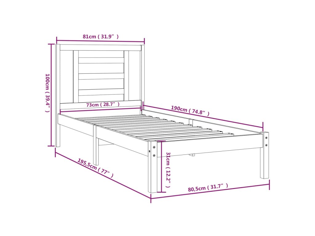 - Rozmery rámu postele: 195,5 x 80,5 x 31 cm (D x Š x V)