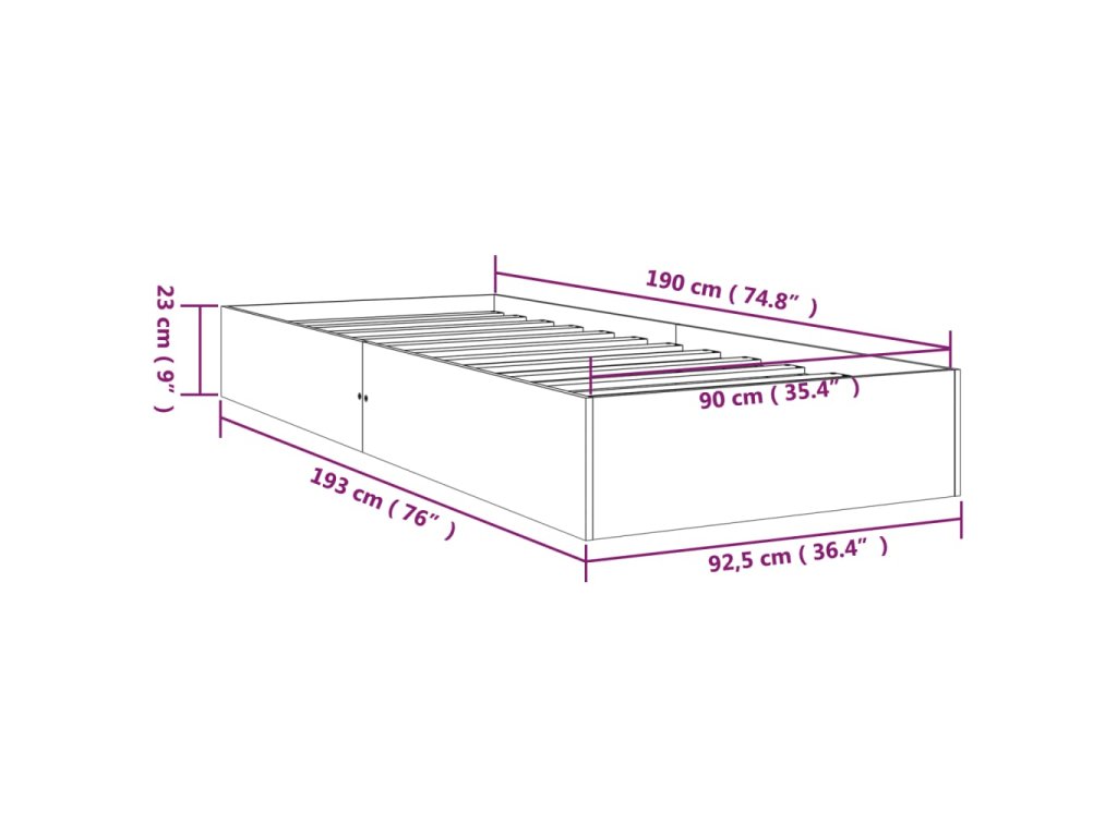 - Tento rám postele je vhodný pre matrac s rozmermi 90 x 190 cm (3FT jednolôžko).