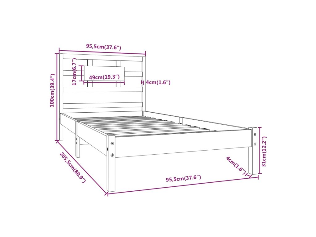 - Celkové rozmery rámu postele: 205,5 x 95,5 x 100 cm (D x Š x V)