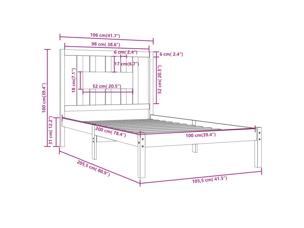 vidaXL Posteľný rám borovicový masív 100x200 cm