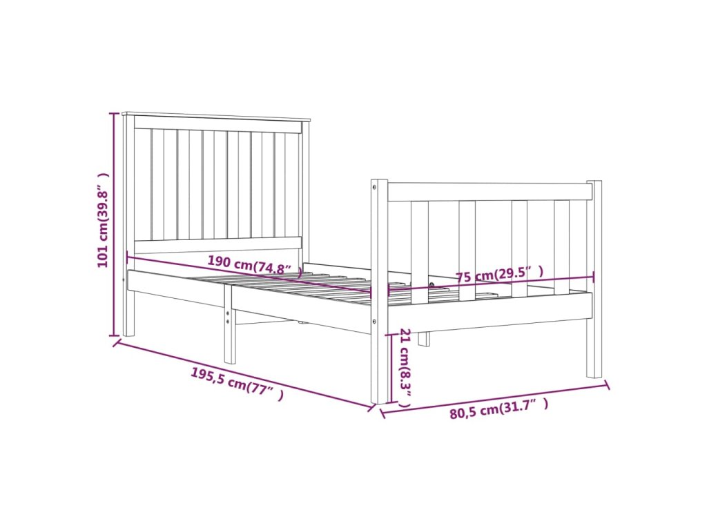 vidaXL Posteľný rám borovicový masív 75x190 cm 2FT6 malé jednolôžko