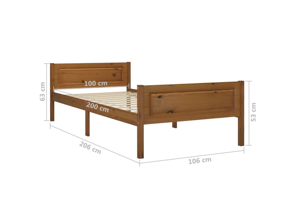 vidaXL Posteľný rám borovicový masív medovo hnedý 100x200 cm