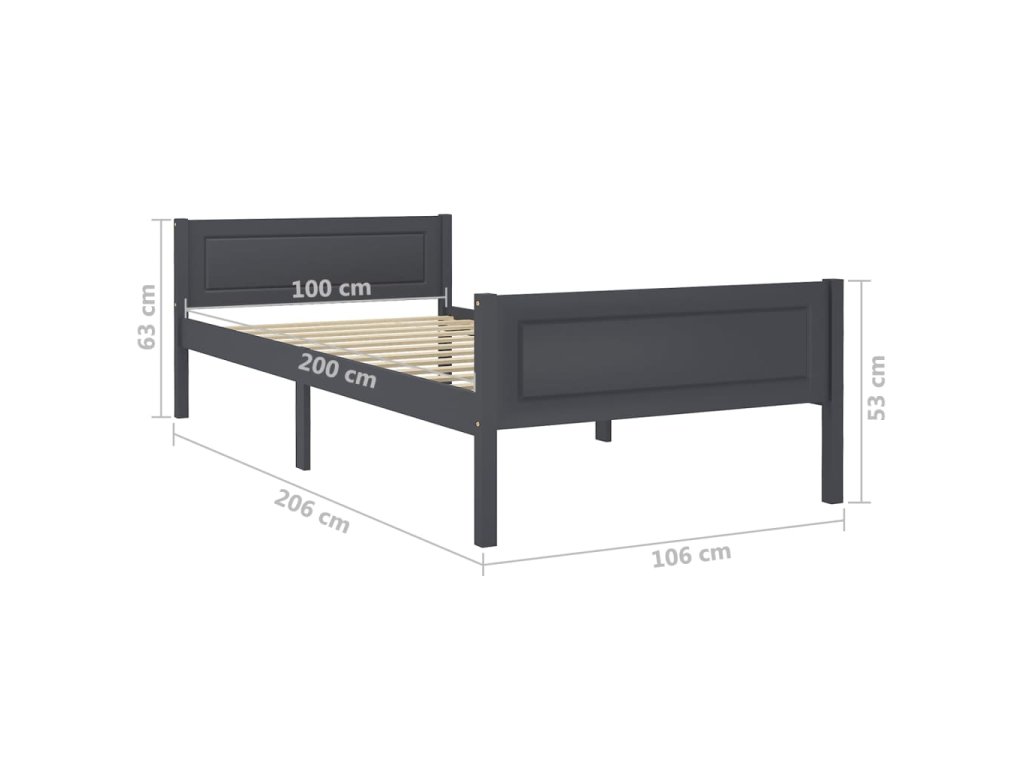 vidaXL Posteľný rám borovicový masív sivý 100x200 cm