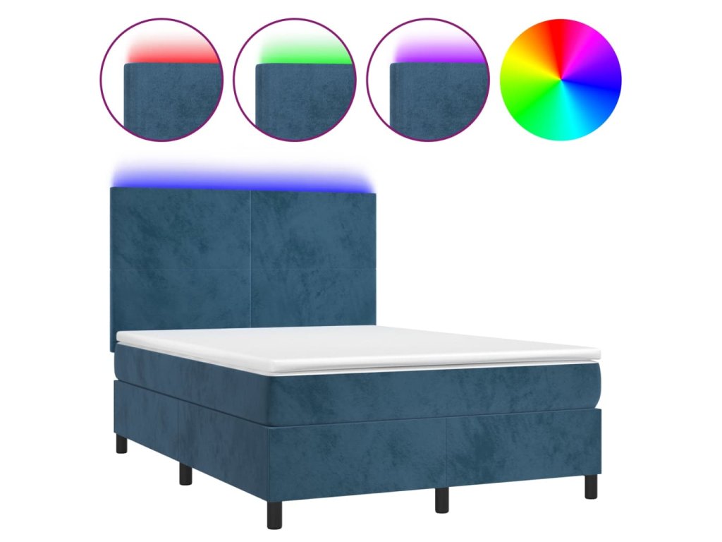 vidaXL Posteľný rám boxsping matrac a LED tmavomodrý 140x200 cm zamat