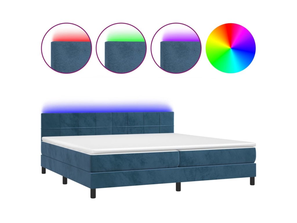 vidaXL Posteľný rám boxsping matrac a LED tmavomodrý 200x200 cm zamat