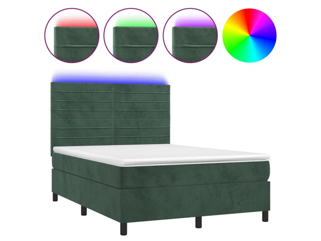 vidaXL Posteľný rám boxsping matrac a LED tmavozelený 140x200 cm zamat