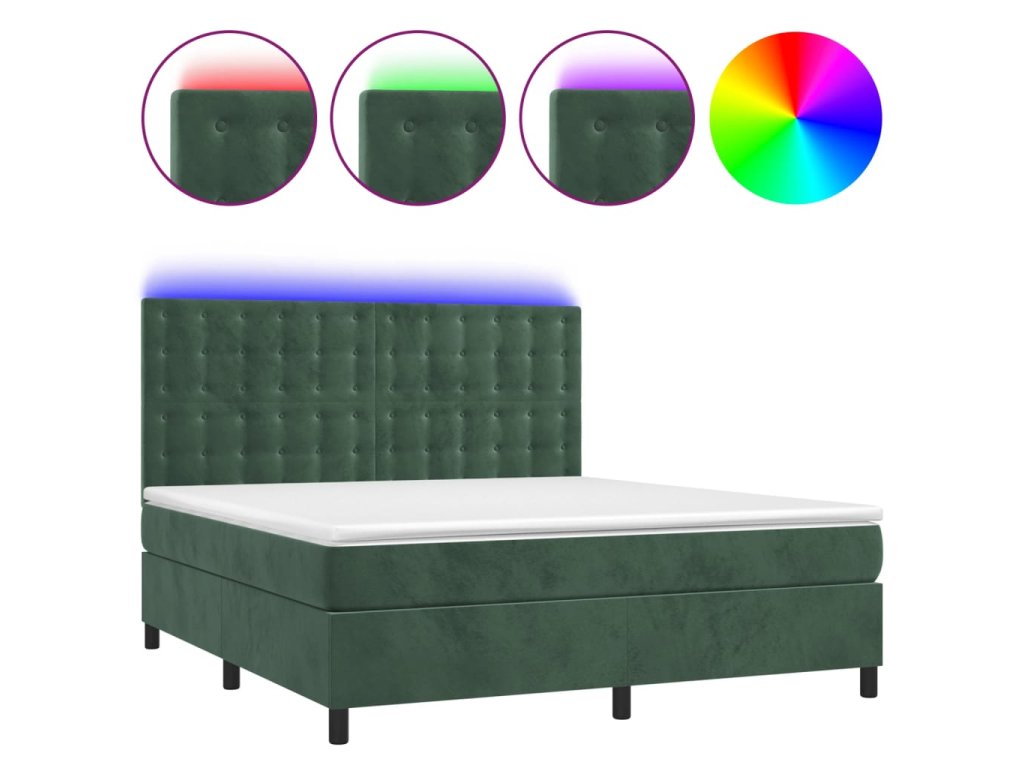vidaXL Posteľný rám boxsping matrac a LED tmavozelený 160x200 cm zamat