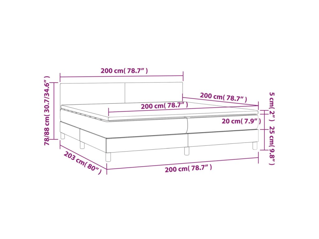 vidaXL Posteľný rám boxsping matrac a LED tmavozelený 200x200 cm zamat