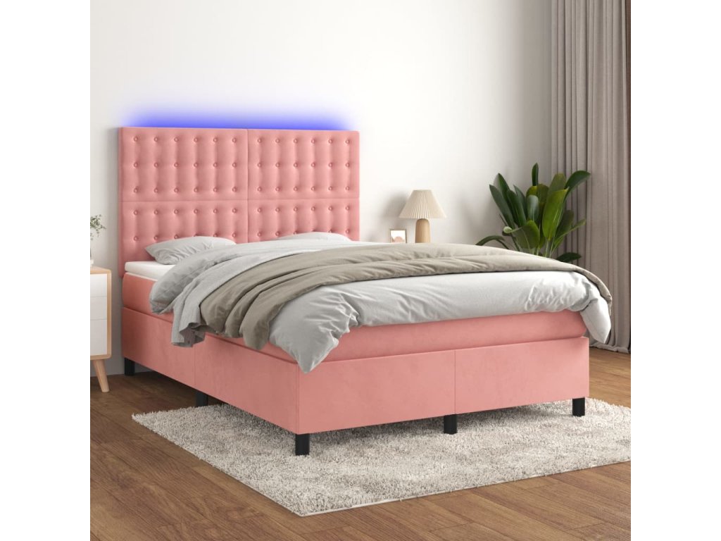 vidaXL Posteľný rám boxsping s matracom a LED ružový 140x190 cm zamat