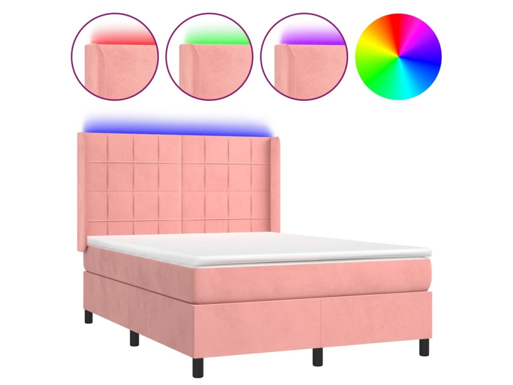 vidaXL Posteľný rám boxsping s matracom a LED ružový 140x190 cm zamat